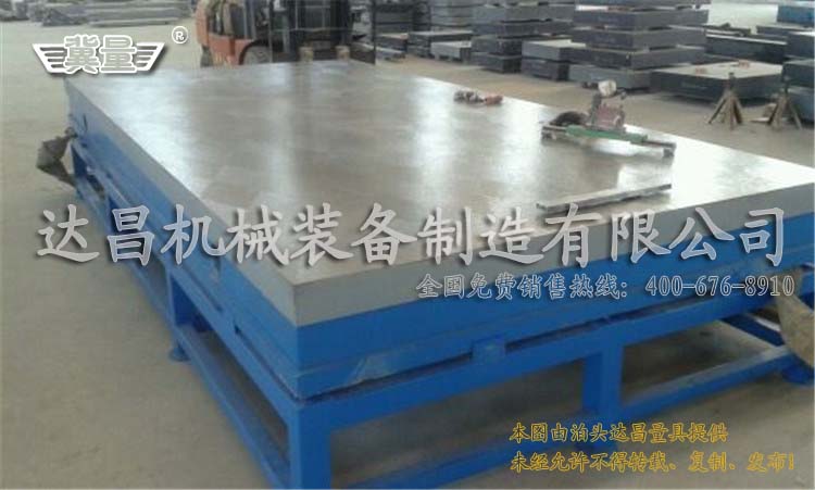 鑄鐵平臺(tái)采用HT200材質(zhì)鑄造而成,后期經(jīng)過(guò)機(jī)床加工加工出外形,然后通過(guò)人工刮研的方式達(dá)到所需要的精度。在出廠前需要對(duì)鑄鐵平臺(tái)的精度進(jìn)行檢驗(yàn)才能確定它是否合格,檢驗(yàn)鑄鐵平臺(tái)精度的方法有很多,一般廠家出廠前都是通過(guò)電子水平儀檢測(cè)的。電子水平儀的價(jià)格較高,一般在一萬(wàn)五左右,建議用戶(hù)可采用合像水平儀、鉗工水平儀或鑄鐵平尺對(duì)鑄鐵平臺(tái)的精度進(jìn)行檢測(cè)。有些用戶(hù)廠內(nèi)有三坐標(biāo),想用三坐標(biāo)來(lái)檢測(cè)鑄鐵平臺(tái),這種方法是不可取的。三坐標(biāo)的基礎(chǔ)平臺(tái)是一個(gè)精度特別高的平臺(tái),它上面的探頭設(shè)置已經(jīng)和平面特別平行,而鑄鐵平臺(tái)的底部是沒(méi)有加工的,這樣會(huì)大大加大它的測(cè)量誤差,再有就是鑄鐵平臺(tái)的工作面是人工鏟刮的,上面會(huì)有刮研時(shí)候留下的刀花,這也會(huì)增加它的測(cè)量誤差。