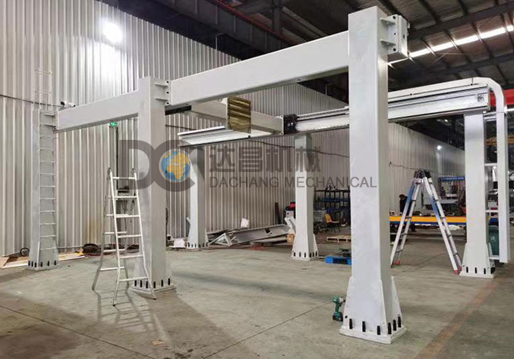 機械手桁架是一種建立在直角X、Y、Z三坐標系統基礎上, 對工件進行工位調整,或實現工件的軌跡運動等功能的全自動工業(yè)設備。 通過控制器對各種輸入信號進行分析處理,做出邏輯判斷后,對各個輸出元件(如電機)下達執(zhí)行命令,完成所需運動。 由于結構特點,設備可用負載大(終端負載>2000KG),可用立柱跨距大(Y行程>10m)。 根據需要,同時可搭載蕞多四個Y軸,實現設備效率的蕞大化。