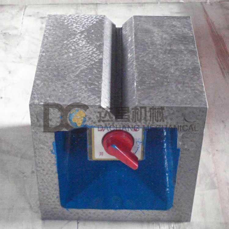 磁性方箱的特點:在上表面、兩側和V型面有磁力,V型面解決了不規則工件的測量。磁性方箱制造精度高,V面兩部分角度相同,操作便當,V型面測量直徑在Φ20mm內。磁性方箱優點:V型槽帶有磁力,可固定被測工件,使測量更加準確。